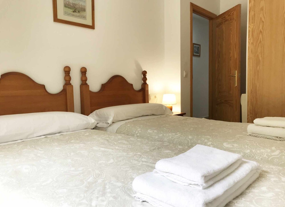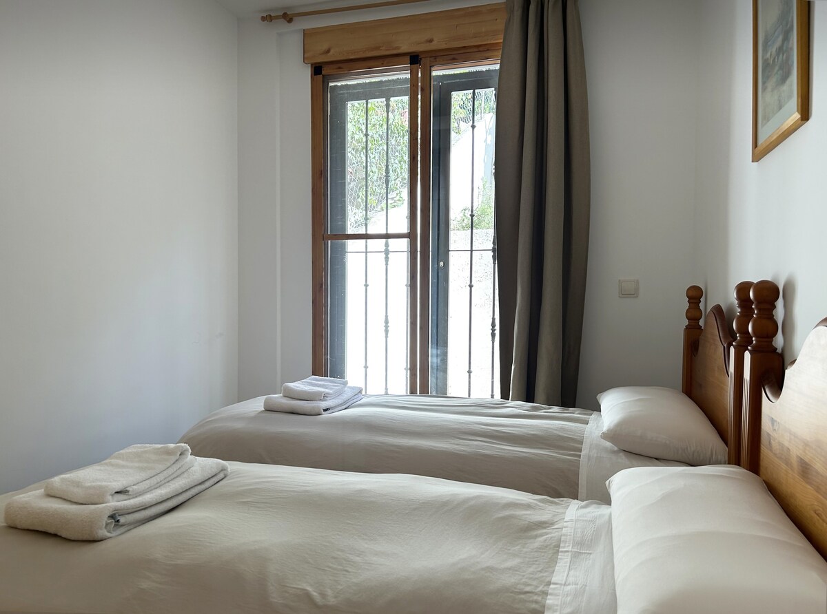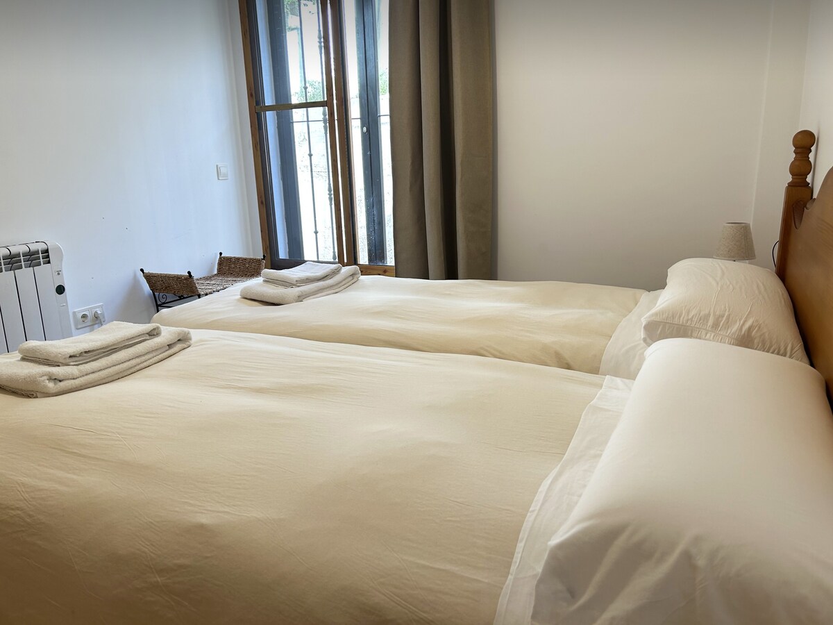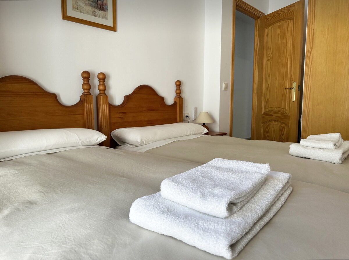 The apartment features two bedrooms, each equipped with two single beds, ensuring a restful night’s sleep after a day of adventure through Chulilla’s stunning natural surroundings. The open-plan kitchen and dining area provide a warm, communal space to cook, eat, laugh, and plan your next outing. The kitchen is fully equipped with everything you need.